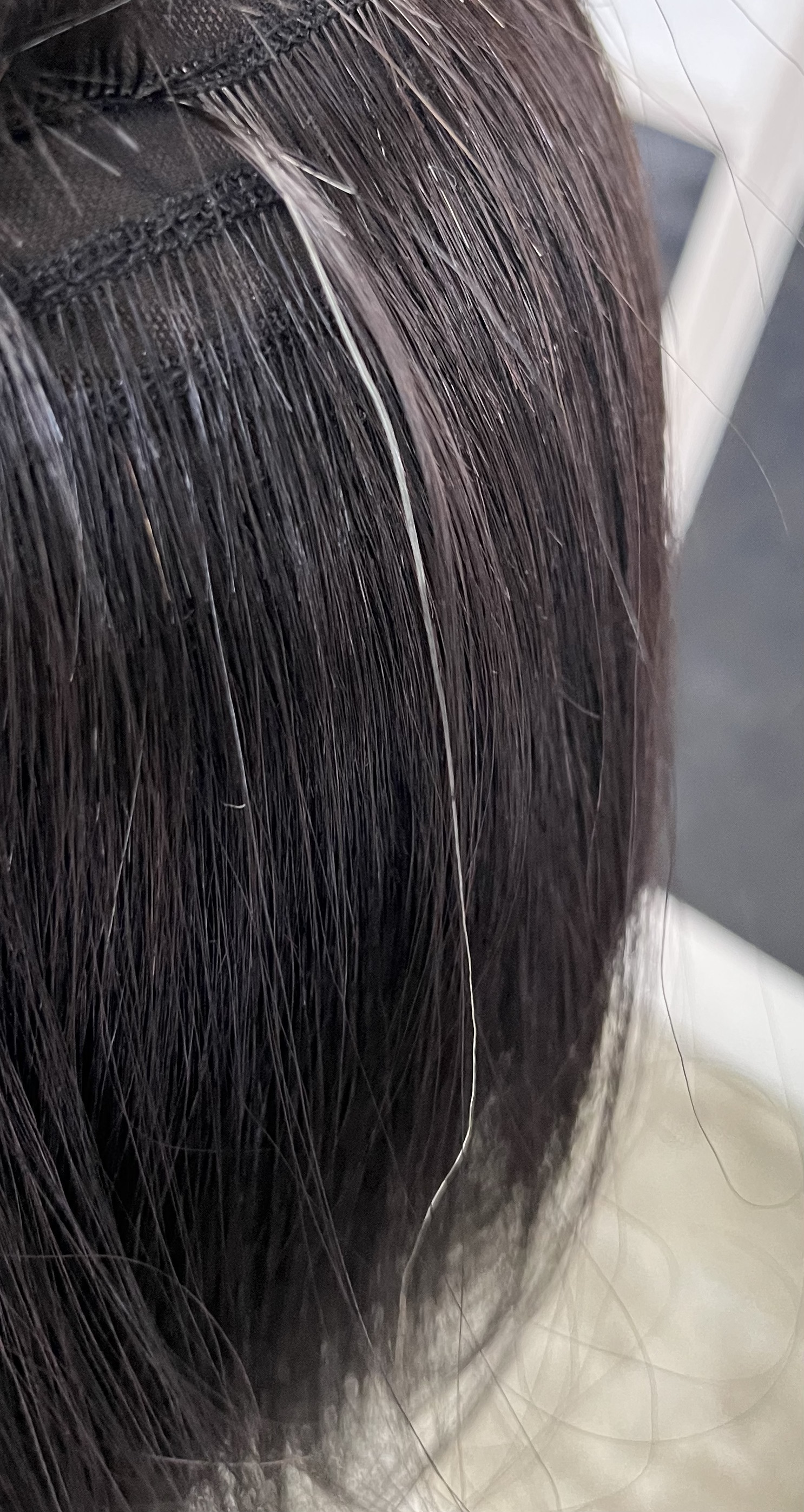 ・白髪が、ごく稀に混ざります。画像で確認してください。過去に仕入れた「総手植えウィッグ」にも大体混ざっていました。